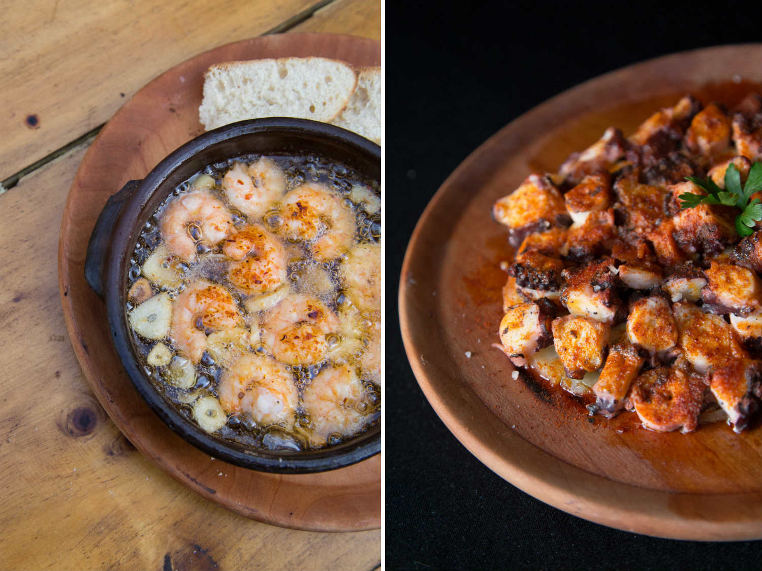Pequeñas raciones de felicidad. En pocas palabras, así podrían describirse las tradicionales tapas –clásicos bocados que abundan en cuanto bar y taberna española uno imagine– y que por estos días es posible disfrutar en una decena de locales en Santiago. Uno de los más nuevos es Formentera, ubicado en calle Las Urbinas, casi en la esquina con Andrés Bello, donde desde hace seis meses ofrece más de treinta tapas, pintxos y montaditos al más puro estilo español. Con opciones como boquerones en vinagre, albóndigas caseras y revuelto de setas con jamón, es un deber pedir el excepcional pulpo a la gallega ($ 8.900), blandito, delicado y con buenas dosis de pimentón de la Vera, como debe ser; además de unas sabrosas gambas al ajillo ($ 6.900), que llegan chisporroteando a la mesa.