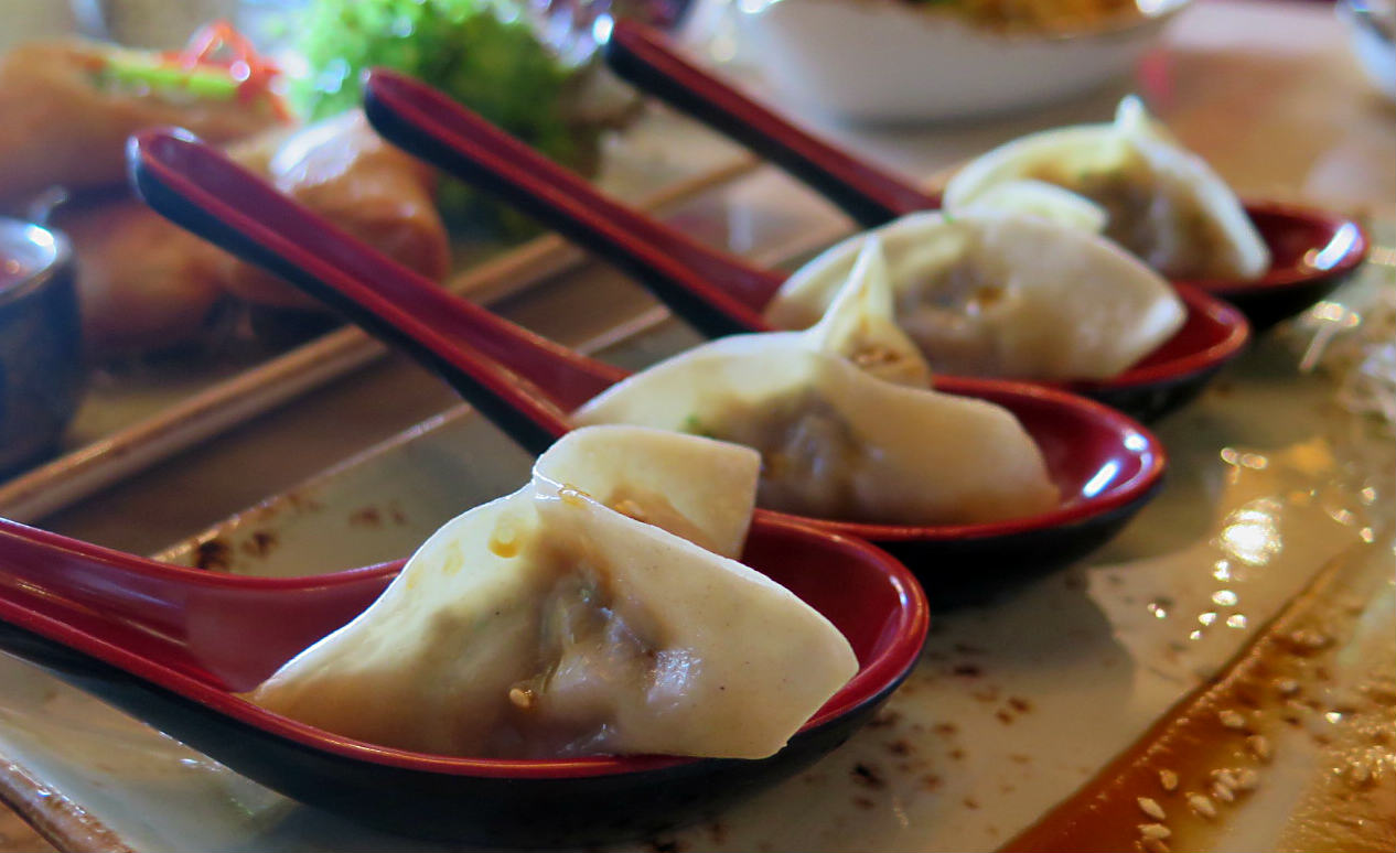 Pequeño, con capacidad para cuarenta comensales y una mini terraza en el exterior, aquí el fuerte es para llevar. ¿Qué pedir? Primero, alguno de sus picoteos. Como los Dumplings ($ 2.800, cuatro unidades), de masa delgadísima y con cuatro tipos de relleno para escoger: de pato laqueado, de tocino –ahumado e intenso–, de pollo y de camarones. Otra buena opción son los Summer Rolls ($ 4.200), que son unos refrescantes y crocantes rollos vegetarianos rellenos de zanahoria, pimentón, zapallo italiano, tallarines de arroz y menta; y los Wonton de cerdo ($ 3.400) que aquí, a diferencia de otros lugares, incluyen mucha carne. Crujientes y sabrosos, son por lejos los mejores de la ciudad.
