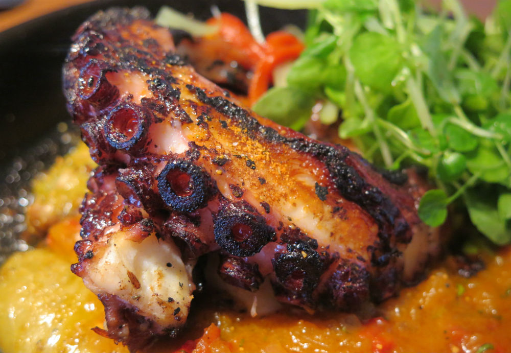 Prueba de ello son, por ejemplo, preparaciones como el Pulpo La Pescadería ($12.500), que viene con este molusco traído desde el norte en punto perfecto cocinado a la parrilla sobre una humeante plancha junto a una sabrosa salsa al arriero –con mucho ajo, pimentón y cebolla–. Un plato contundente y adictivo. Otro hit de la carta es un plato que Walker resucitó del desaparecido restaurante Delmónico, del cual también fue dueño. Se trata del Risotto de camarones con mantequilla al créole ($11.200): cremoso, al dente, con buenas dosis de queso y especias clásicas de la cocina cajún: una intensa mezcla que incluye ajo, pimentón, semillas de mostaza y ají, entre otras. Una delicia.