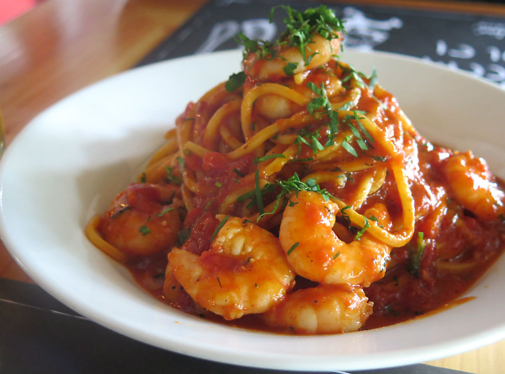 Las delicadas pastas artesanales, elaboradas con harina italiana y buenas dosis de huevo, siguen siendo las estrellas de la carta y podrás encontrarlas en diez versiones distintas. Además de los Pappardelle con ragú de carne y funghi porcini ($11.500) y la suculenta Lasaña bolognesa ($11.000) –sabrosa, rústica y con excelente salsa bechamel–, el hit de la carta es sin duda el Spaguetti Busara ($12.000): una excepcional preparación que incluye cebollas confitadas, camarones, salsa de tomates elaborada con la reducción de las colitas de estos crustáceos, un toque de ajo y perejil. Aromática y levemente dulce, es una pasta adictiva.