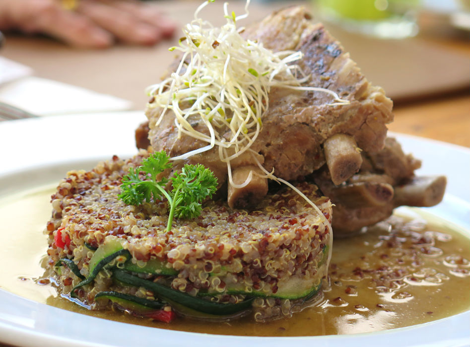 Para partir, recomendamos los Mariscos y crema de vino ($3.900), una rústica pero enjundiosa preparación que incluye choritos, almejas, patitas de jaiba y ostiones en una salsa de vino blanco, crema y mucho ajo. De los fondos, las opciones más clásicas y chilenas son las que sacan aplausos. Por eso, váyase derechito por el Garrón de cordero ($11.500), perfectamente cocinado, acompañado de un puré de papas y zapallo. Simple y bueno. Otro plato que destaca es la Polenta cremosa ($8.500), de textura suave, que viene sobre un adictivo guiso de champiñones salteados con un toque de vino y coronado por un huevo pochado. Platos como este confirman la consigna de que menos es más. También cuentan con un especiado y sabroso Costillar de cerdo ($9.800) adobado con un toque de miel y tomillo al que, hay que decirlo, le faltaba crocancia al exterior, que viene acompañado con un logrado guiso de quínoa cocinado en caldo de verduras.