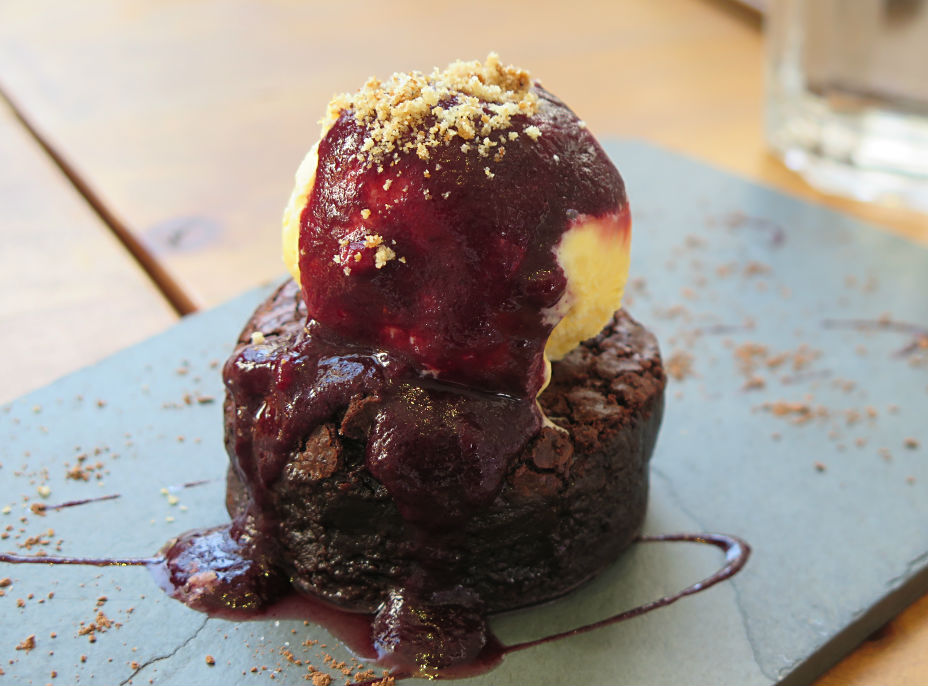 Deje espacio para los postres y pida el imperdible Sticky toffee pudding ($3.900) –una receta no apta para diabéticos–, que es un denso bizcocho bañado en caramelo y acompañado de helado; o el untuoso Brownie de chocolate ($3.900), de textura muy bien lograda.