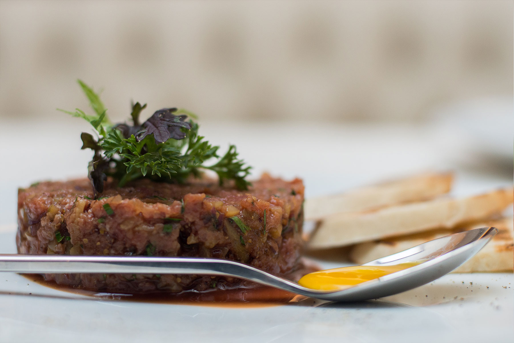 El resultado son platos golosos y elegantes, de sabores profundos y, algunos, perfectos para dormir una siesta después de comerlos. Así puede comprobarlo con la Tarta de médula con cebolla caramelizada y espinacas ($6.000), de sabor intenso, cremoso y de rico dulzor, que se potencia aún más por el demiglace que la acompaña; en el famoso Huevo trufado ($6.500), uno de los platos insignes y más instagrameados de este local, que incluye una densa tostada de pan de campo con pasta de hongos, trocitos de tocino, aceite de trufa y un huevo de campo perfectamente pochado; o una cremosa Sopa de cebolla ($6.500) de exquisito dulzor, elaborada en base a un caldo de hongos y buenas dosis de pimienta.
