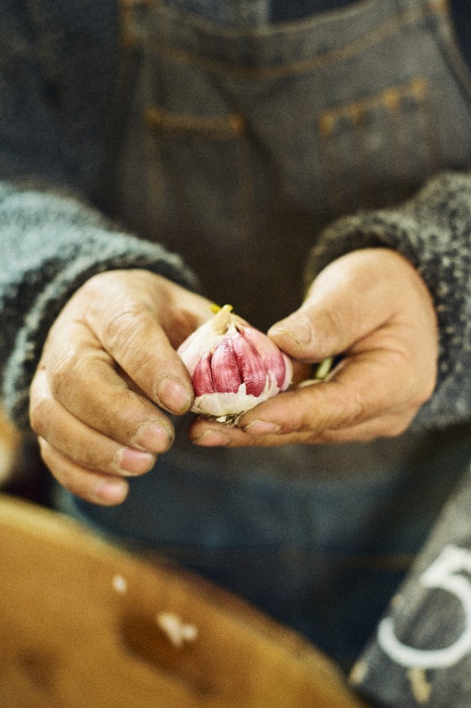 El ajo chileno, de cáscara rosada y sabor intenso, es una variedad espectacular para cocinar, pero poco a poco ha sido reemplazado por los ajos chinos, esos de color blanco y más insípidos. Son los mismos que vende Claudio Arredondo desde hace cuatro años, que compra directamente a pequeños productores de El Monte. También ofrece cebollas en escabeche, legumbres, miel de Curicó, cochayuyo de Pichilemu y especias de buena calidad, como comino, orégano y ají color.