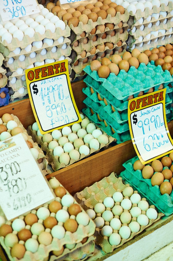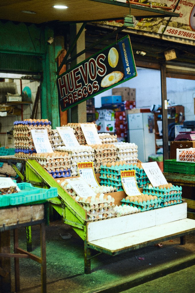Otro puesto clásico del Galpón Chacareros. Con más de 25 años de vida, cuenta huevos de distintos tamaños y variedades, entre los que destacan los de campo y los de gallina araucana: los más pedidos. También ofrecen miel artesanal y aceitunas de Azapa.