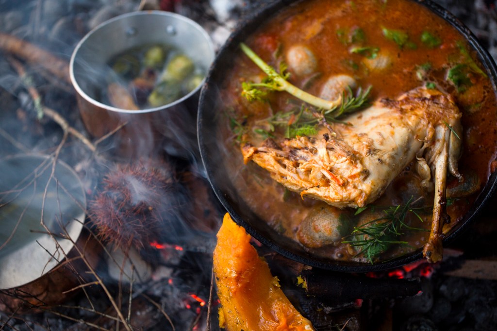 Tuve la suerte de probar este orejudo en el fogón de Mauricio Ayala, quien lo hirvió entero por cuatro horas, con mucho espumante, zanahoria y hierbas frescas. Me comentaba que este plato —y me atrevo a decir que proyectaba todo su estilo en general— estaba inspirado en la cocina de “ese abuelo patachero que salía a cazar con sus amigotes”. Que ponía trampas, llevaba sus presas a casa y las limpiaba. Veía en ello una simbiosis antigua entre el mundo femenino y masculino.