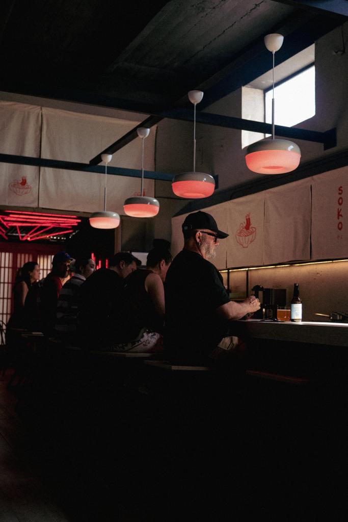SOKO / Tras un fin de semana de marcha blanca, este sábado abre oficialmente el nuevo proyecto del chef Pedro Chavarría: Soko, al interior del Galpón Víctor Manuel, en Barrio Franklin. Una barra de ramen y comfort food asiática, ubicada a unos 30 metros de DeMo, que gira en torno a la icónica sopa nipona de fideos y algunos platos con guiños a Japón y Corea: ñoquis de arroz con salsa gochugaru –tteokbokki–, las brochetas a la parrilla –yakitori–, las bolitas de pulpo –takoyaki– o el cerdo frito al estilo karaage. El corazón del lugar será una barra bajo lámparas redondas, donde todo ocurre a la vista. “Se gestó bastante natural. Me habían hablado del galpón y cuando lo vi entendí que era perfecto para algo más crudo y relajado”, cuenta Chavarría. Sobre cómo conviven sus distintos proyectos, además de DeMo Magnolia, el cocinero angelino es claro: “Son tres proyectos bien distintos. La idea es encararlos con equipos sólidos y conceptos claros, para que cada uno tenga su personalidad sin perder coherencia”, dice.