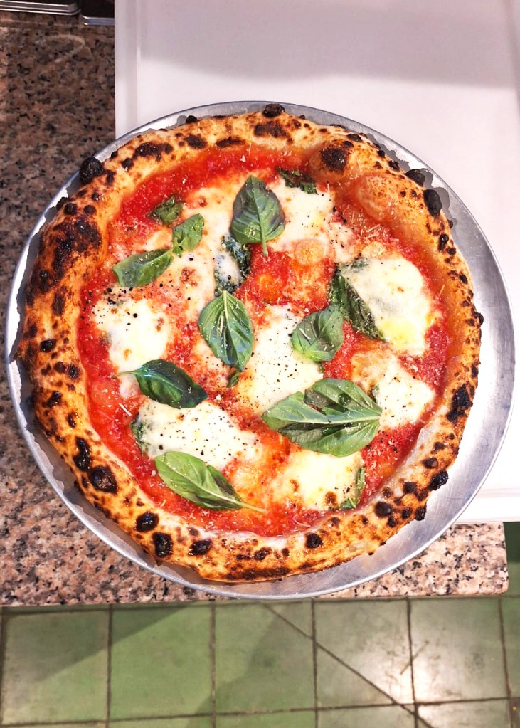 La de Pepperoni ($13.000) es una de las favoritas, con salsa picante de maní, pomodoro, parmesano y el borde untado en mantequilla de ajo. Y la más jugada es la de Base verde, con mozzarella, ricota, habas y naranja. Sorprendente. “Usamos la pizza como un formato para seguir cocinando”, cuenta. “Nos interesa trabajar con buenos ingredientes y combinaciones que funcionen bien juntas”.