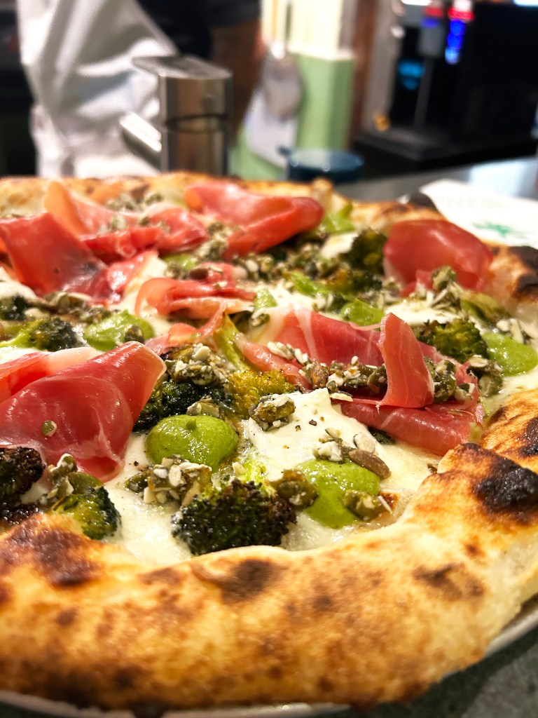Algunas variedades van rotando según temporada: por sus pizzas han pasado ingredientes como espárragos, hinojo, anchoas, granadas e incluso furikake, esa mezcla japonesa de algas y semillas de sésamo. “La idea es mantener esa libertad, probar cosas nuevas y trabajar la pizza con el mismo proceso creativo que un plato de restaurante”, explica Ágata.