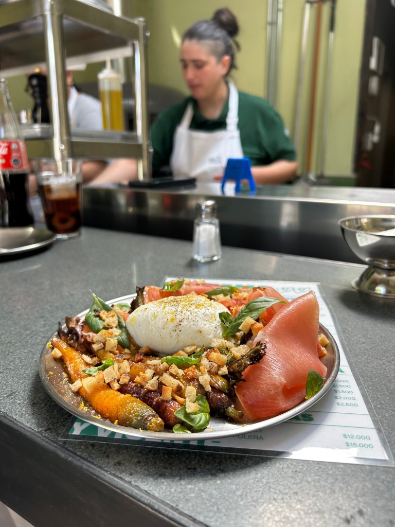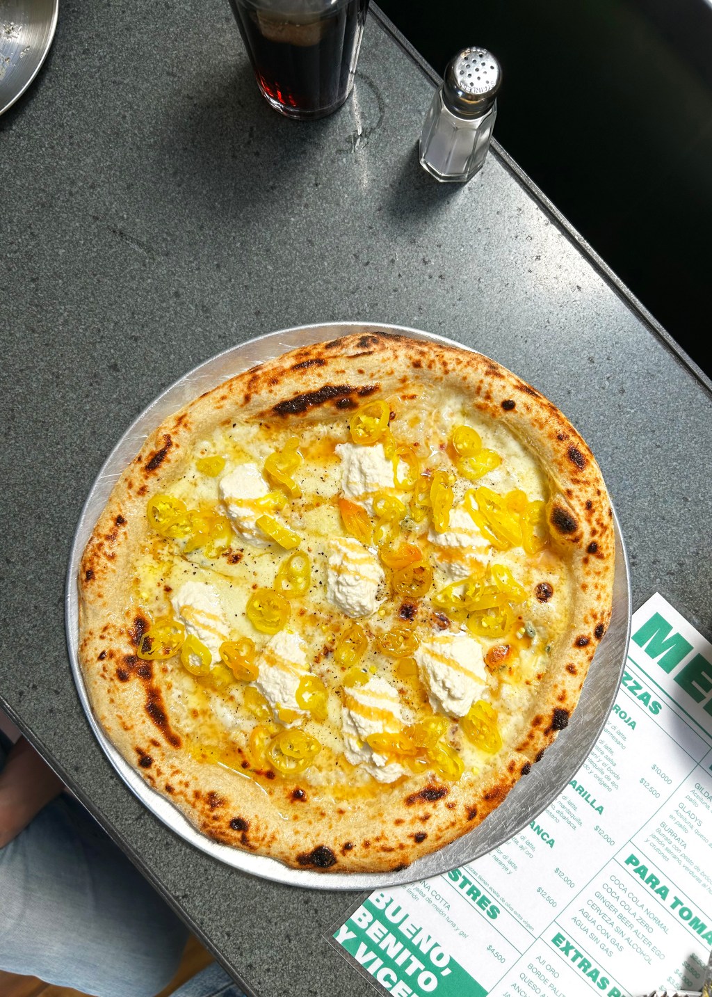 El local es mínimo y, por lo mismo, se llena. Hay que ir con tiempo y paciencia. ¿La carta? Corta y precisa, con no más de 10 preparaciones. Hay seis pizzas: una Margarita –“para los mañosos”, dice Ágata–, pero el hit son las otras. Entre ellas, la de Base blanca con mozzarella, queso azul, ají oro encurtido y miel ($13.000), de notas agridulces. O la de Base amarilla con choclo asado con mantequilla, salsa de ají, albahaca, ciboulette y parmesano.